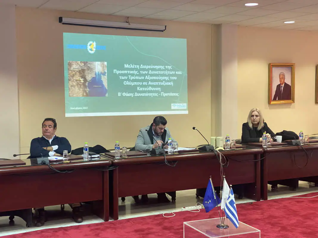 Συγκεκριμένα οι εκπρόσωποι της μελετητικής εταιρείας παρουσίασαν τη β΄ φάση της έρευνας στο πλαίσιο της οποίας αναπτύσσονται οι δυνατότητες και οι προοπτικές αξιοποίησης του μυθικού βουνού προς όφελος της παρολύμπιας περιοχής αλλά και όλης της χώρας.
