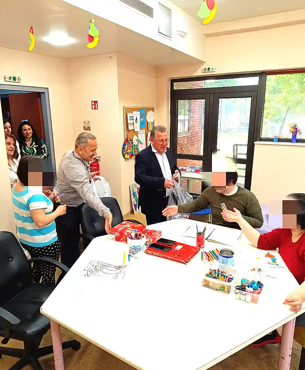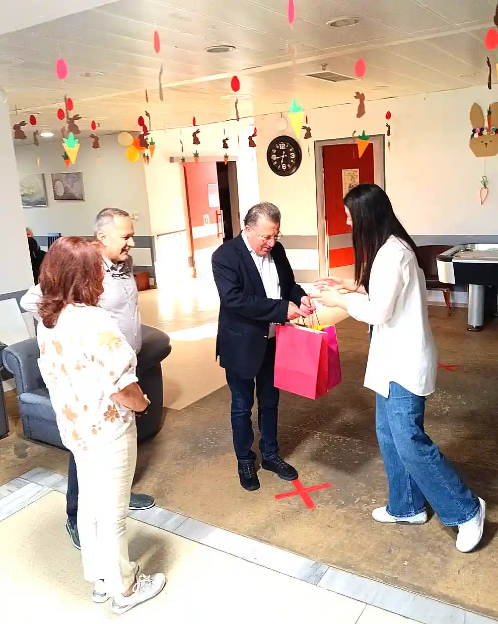 Στη συνέχεια συνομίλησε με τα παιδιά της δομής άκουσε τις επιθυμίες τους, αντάλλαξε πασχαλινές ευχές και εξέφρασε ευχαριστίες για τα συμβολικά δώρα – κατασκευές των εργαζομένων και των παιδιών που του πρόσφεραν. Τέλος, δώρισε στα παιδιά δημιουργικά παιχνίδια και πασχαλινά γλυκίσματα.