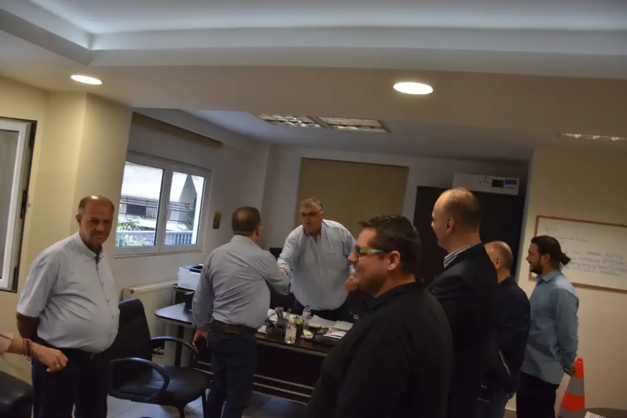 Η πρωινή περιοδεία του Γιάννη Ντούμου στον Δήμο ολοκληρώθηκε με επίσκεψη στα γραφεία της ΔΕΥΑ Κατερίνης, όπου και οι εκεί υπάλληλοι αντιμετώπισαν πολύ θετικά την παρουσία του επικεφαλής του Συνδυασμού, «Δήμος Πρότυπο», στη Δημοτική Επιχείρηση Ύδρευσης και Αποχέτευσης του Δ.Κατερίνης.