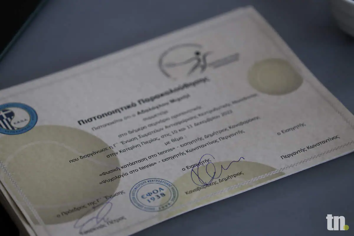 - Ψυχολογία στο τένις, με εισηγητή τον Κώστα Περγαντή