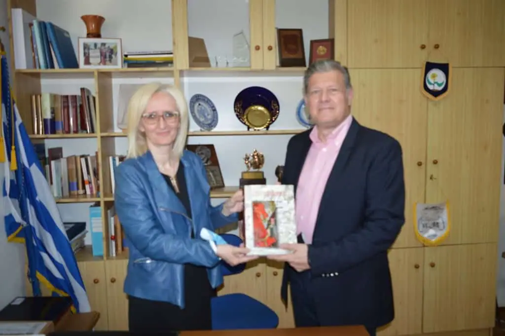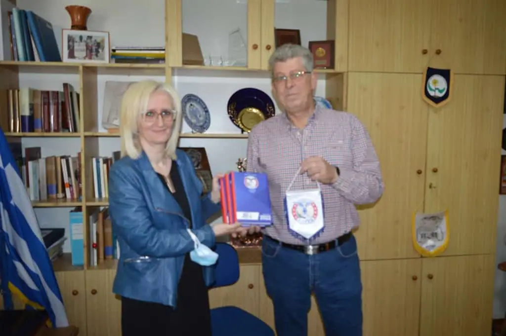Για το σκοπό αυτό, ο πρόεδρος του τμήματος Κατερίνης, Παναγιώτης Ταρενίδης, συνοδευμένος από τον ταμία, Ευθύμιο (Θέμη) Σαρηγιαννίδη επισκέφθηκαν την έδρα της Εταιρείας Πιερικών Μελετών-Εστία Πιερίδων Μουσών Κατερίνης, όπου τους υποδέχθηκαν η πρόεδρος, Στέλλα Τζιτζιλή συνεπικουρούμενη από διοικητικά μέλη και συνεργάτες.