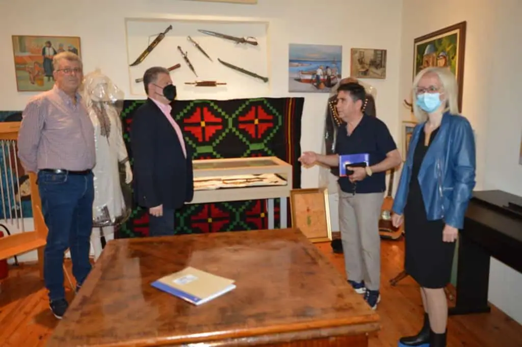 Η κ Τζιτζιλή υποδέχτηκε και ξενάγησε τους κ. Ταρενίδη και Σαρηγιαννίδη στους χώρους των εκθεμάτων και του ενδυματολογικού πλούτου του συλλόγου, πρόσφερε την μοναδικής πνευματικής αξίας έκδοση με τα πρακτικά του 4ου συνεδρίου της Εστίας «Η Πιερία στα Βυζαντινά και Νεώτερα Χρόνια», επισημαίνοντας: «Ο σύλλογος μας του οποίου η δυναμική ξεπέρασε τα σύνορα της Πιερίας, με πλειάδα αναγνωρίσεων του έργου, μεταξύ των οποίων η κορυφαία βράβευση από την Ακαδημία Αθηνών, ανταποκρίνεται σε κάθε παραγωγικό και δημιουργικό κάλεσμα. Με χαρά είμαστε στη διάθεσή σας για τη συνεργασία τόσο στο επικείμενο εθνικό σας συνέδριο, όσο και σε ακόμα περισσότερες συνέργειες.»