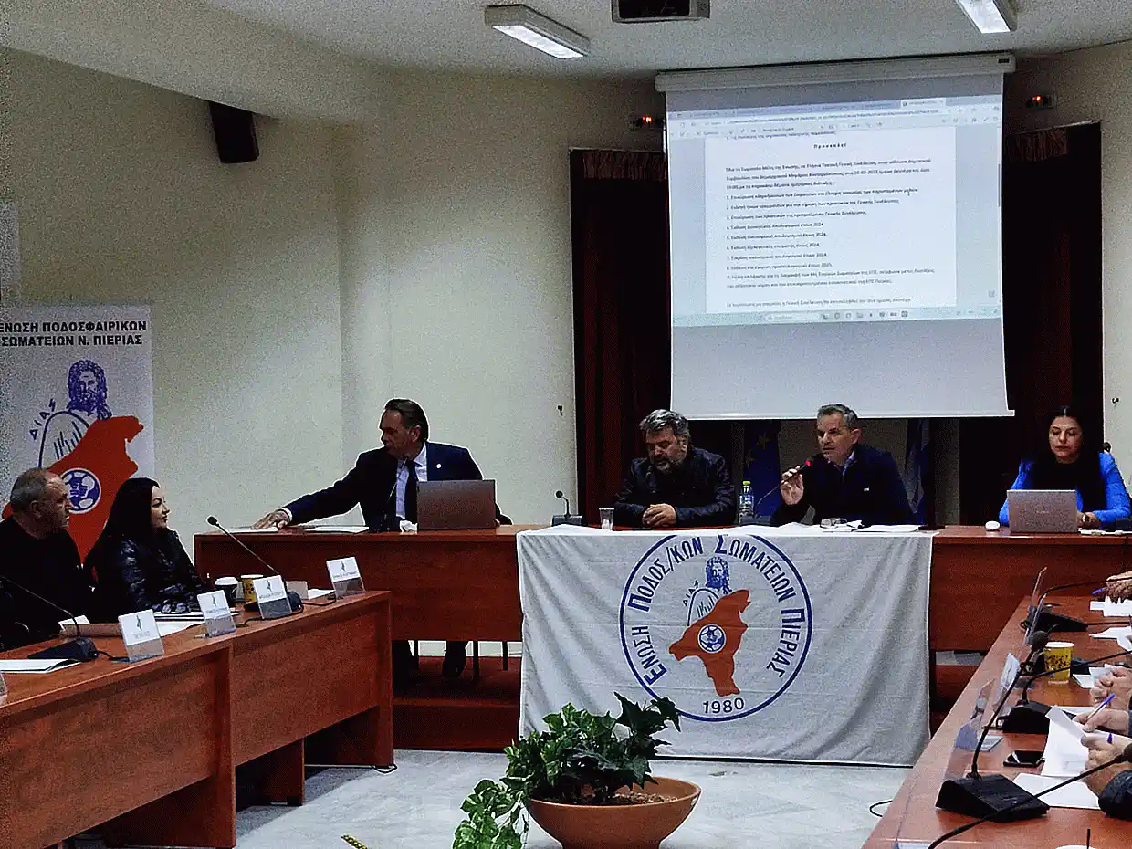 Πραγματοποιήθηκε χθες η Ετήσια Τακτική Γενική Συνέλευση της ΕΠΣ Πιερίας, στην αίθουσα Δημοτικού Συμβουλίου του Δημαρχιακού Μεγάρου Κονταριώτισσας με τα παρακάτω θέματα ημερήσιας διάταξης: