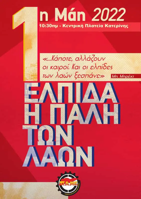 ΟΛΟΙ ΣΤΗΝ ΑΠΕΡΓΙΑΚΗ ΣΥΓΚΕΝΤΡΩΣΗ ΤΗΝ ΚΥΡΙΑΚΗ 1η ΜΑΗ ΣΤΗΝ ΚΕΝΤΡΙΚΗ ΠΛΑΤΕΙΑ ΤΗΣ ΚΑΤΕΡΙΝΗΣ στις 10:30 πμ.