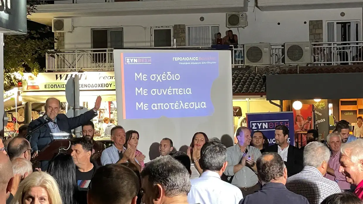 Γνώστης των προβλημάτων κάθε μιας από τις 12 κοινότητες του Δήμου Δίου-Ολύμπου, ο Βαγγέλης Γερολιόλιος, υποψήφιος δήμαρχος Δίου-Ολύμπου, στις προεκλογικές του ομιλίες παρουσιάζει τις λύσεις και προγραμματικές θέσεις του συνδυασμού του “ΣΥΝΘΕΣΗ”.