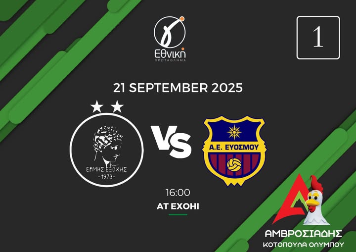 Την Κυριακή στις 16:00 ο Ερμής Εξοχής υποδέχεται την ΑΕ Ευόσμου στο γήπεδό του!