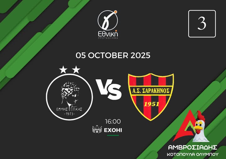 Όλοι οι δρόμοι οδηγούν την Κυριακή 5 Οκτωβρίου και ώρα 16.00 στο γήπεδο της Εξοχής όπου ο τοπικός Ερμής αντιμετωπίζει τον Σαρακηνό Βόλου στο πλαίσιο της 3ης αγωνιστικής για τον 2ο όμιλο της Γ’ Εθνικής κατηγορίας.