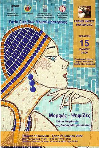 Η Εστία Πιερίδων Μουσών Κατερίνης στα πλαίσια Εκδηλώσεων των Εαρινών Ημερών Μουσών, θα παρουσιάσουν την 1η Ατομική Έκθεση Ψηφιδωτών της Δώρας Μαυροματίδου.