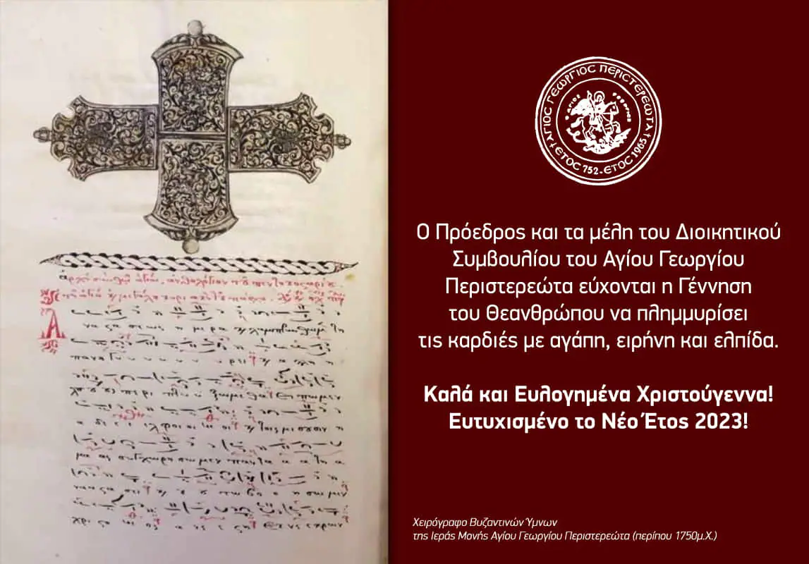 Ο Πρόεδρος και τα μέλη του Διοικητικού Συμβουλίου του Αγίου Γεωργίου Περιστερεώτα εύχονται η Γέννηση του Θεανθρώπου να πλημμυρίσει τις καρδιές με αγάπη, ειρήνη και ελπίδα.