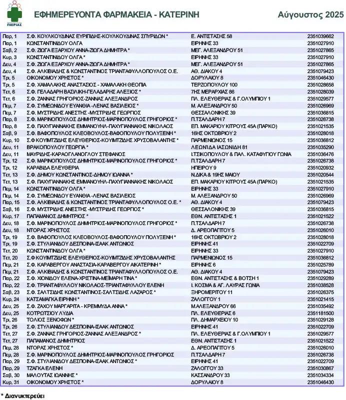 Εφημερεύοντα & Ανοιχτά Φαρμακεία για Κατερίνη