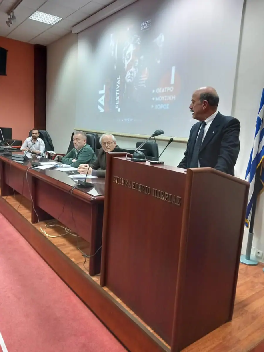 Ο Νικόλαος Λαμπονίκος, πρόεδρος του Πολιτιστικού Οργανισμού του Δήμου Δίου-Ολύμπου, εκπροσωπώντας τον Δήμαρχο, Ευάγγελο Γερολιόλιο: «Εδώ και δεκαετίες το Φεστιβάλ Ολύμπου πρωτοστατεί στα πολιτιστικά δρώμενα. Είμαστε δίπλα σας όπου και όπως μπορούμε. Σε έναν Δήμο όπου υπάρχει ο μεγαλύτερος αρχαιολογικός πλούτος του Νομού μας.»