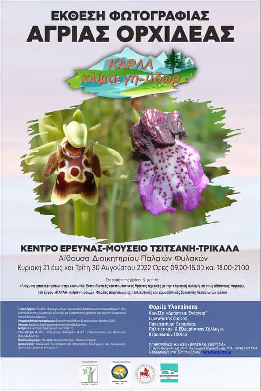 Μια ονειρική έκθεση φωτογραφίας θα φιλοξενηθεί στο Κέντρο Έρευνας –Μουσείο Τσιτσάνη –Αίθουσα Διοικητηρίου Παλαιών Φυλακών, το χρονικό διάστημα από Κυριακή 21 έως και Τρίτη 30 Αυγούστου 2022 ( ώρες 09.00-15.00 και 18.00-21.00), που θα έχει ως θέμα ένα μοναδικό σε ομορφιά και συμπεριφορά φυτό – την Αυτοφυή Ορχιδέα- που ευδοκιμεί στην γύρω περιοχή της λίμνης Κάρλας και σήμερα κινδυνεύει από εξαφάνιση.