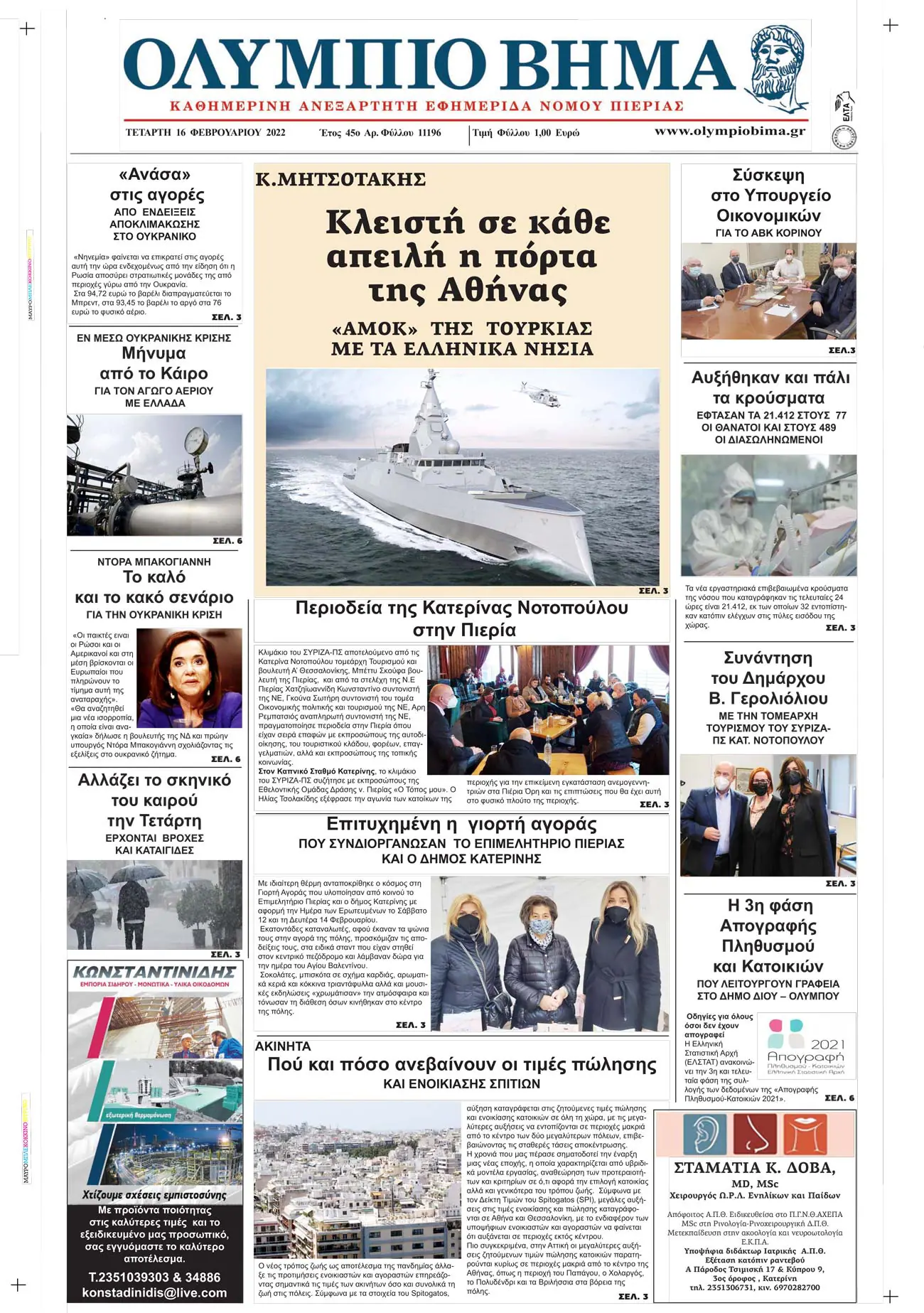 Μείνετε ενημερωμένοι με αξιόπιστες ειδήσεις από την Κατερίνη, την Πιερία, την Ελλάδα και τον κόσμο, καθημερινά στο olympiobima.gr.