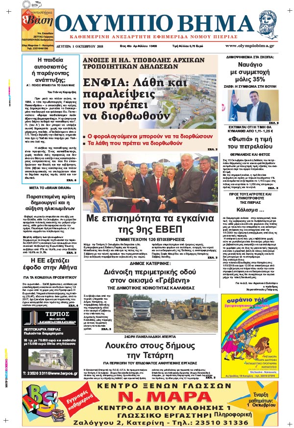 Μείνετε ενημερωμένοι με αξιόπιστες ειδήσεις από την Κατερίνη, την Πιερία, την Ελλάδα και τον κόσμο, καθημερινά στο olympiobima.gr.