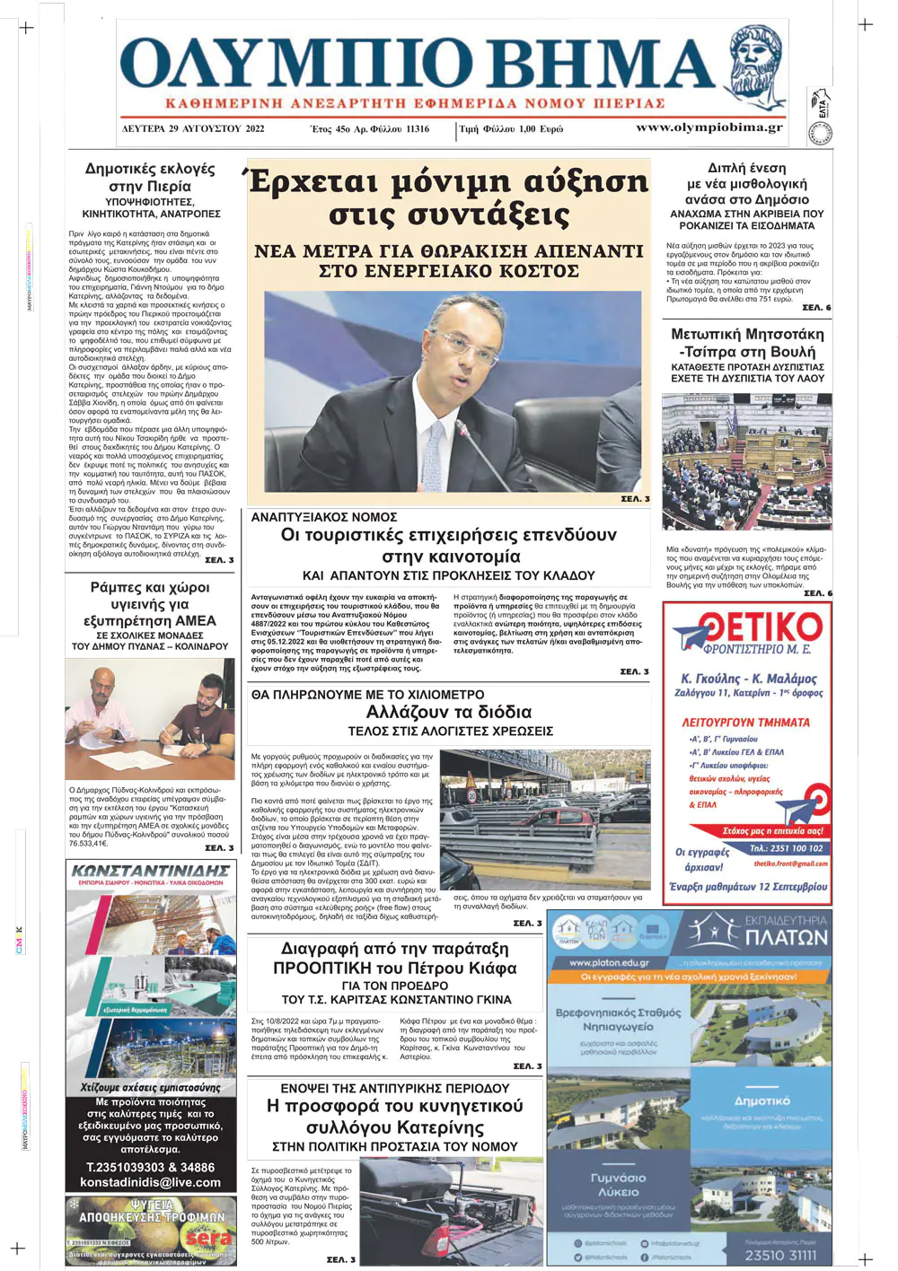 Η καθημερινή εφημερίδα για την Κατερίνη και την Πιερία, από το 1974, στην ηλεκτρονική της έκδοση.