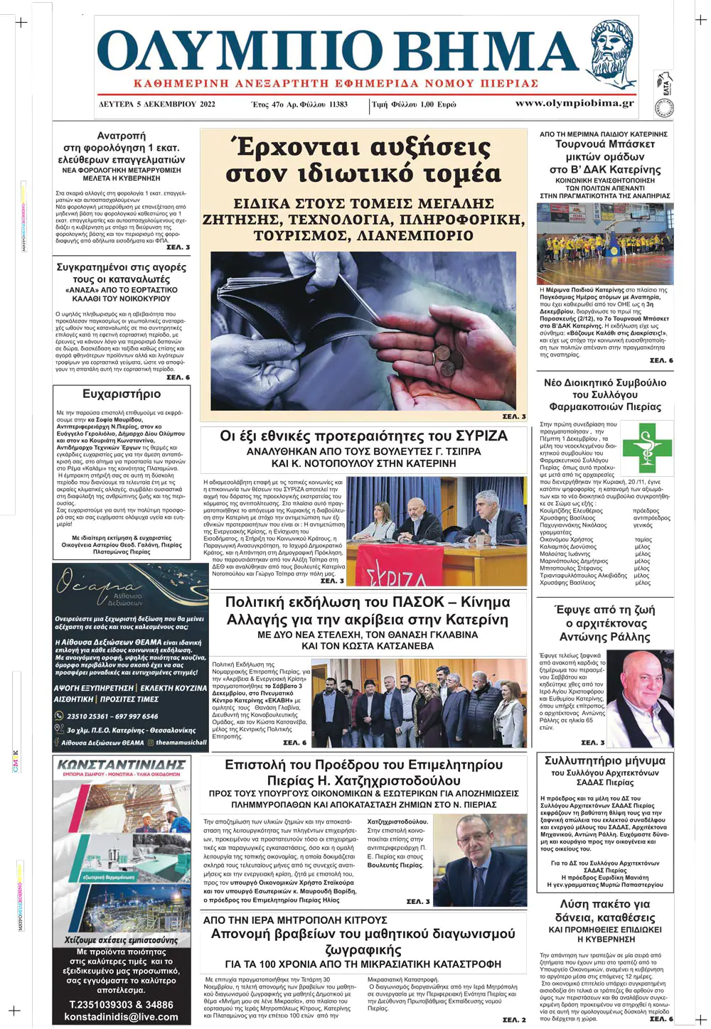 Η καθημερινή εφημερίδα για την Κατερίνη και την Πιερία, από το 1974, στην ηλεκτρονική της έκδοση.