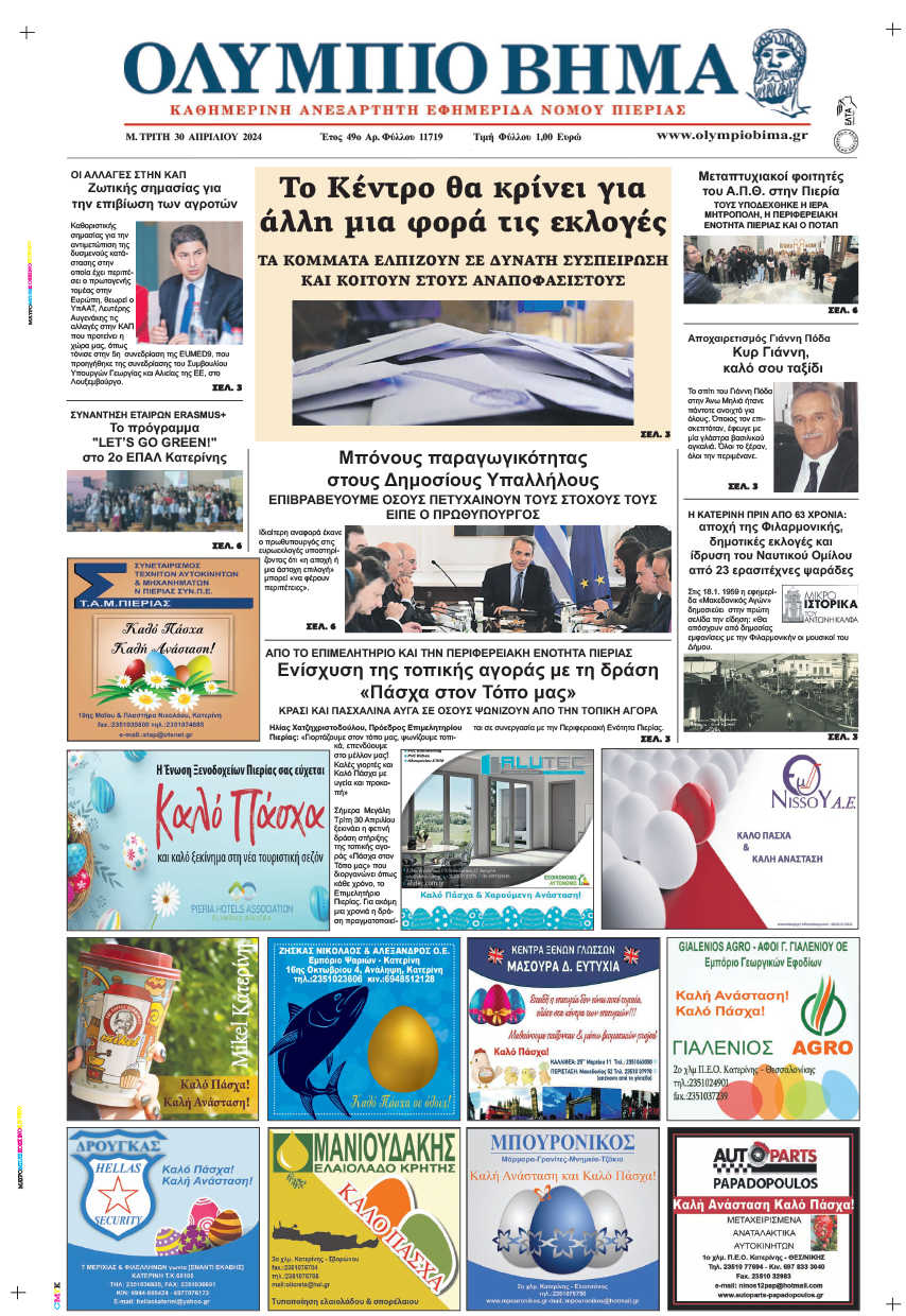 Μείνετε ενημερωμένοι με αξιόπιστες ειδήσεις από την Κατερίνη, την Πιερία, την Ελλάδα και τον κόσμο, καθημερινά στο olympiobima.gr.
