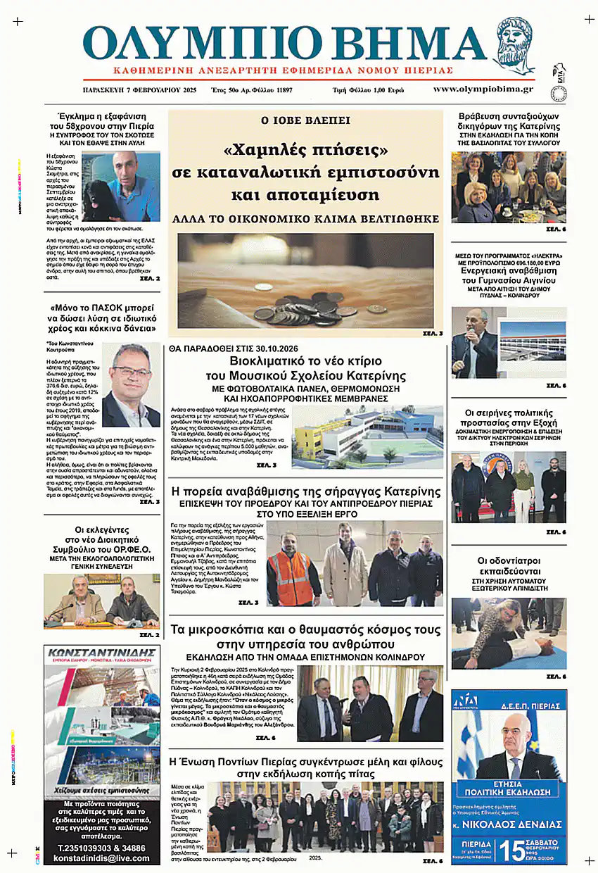 Το πρωτοσέλιδο της εφημερίδας Ολύμπιο Βήμα για την Παρασκευή, 07 Φεβρουαρίου 2025