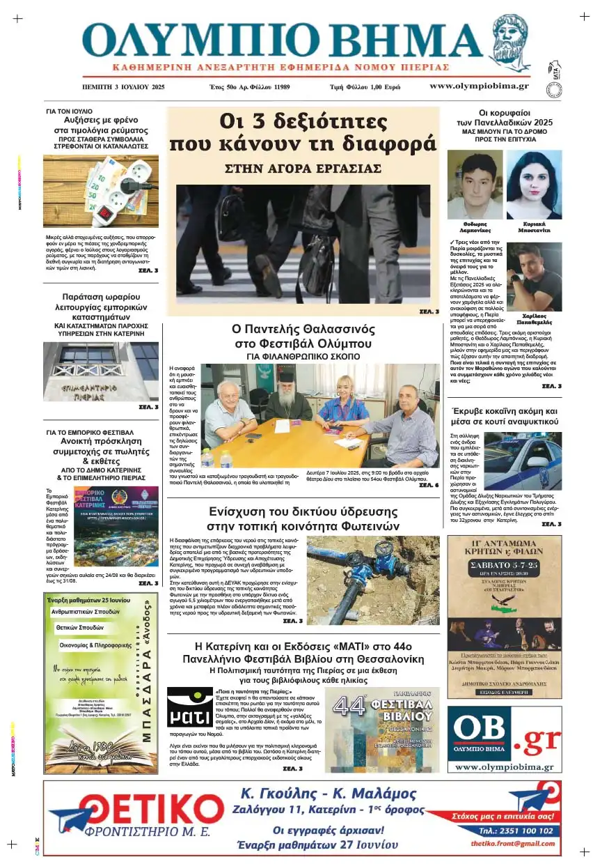 Ολύμπιο Βήμα – Πρωτοσέλιδο για την Πέμπτη, 03 Ιουλίου 2025