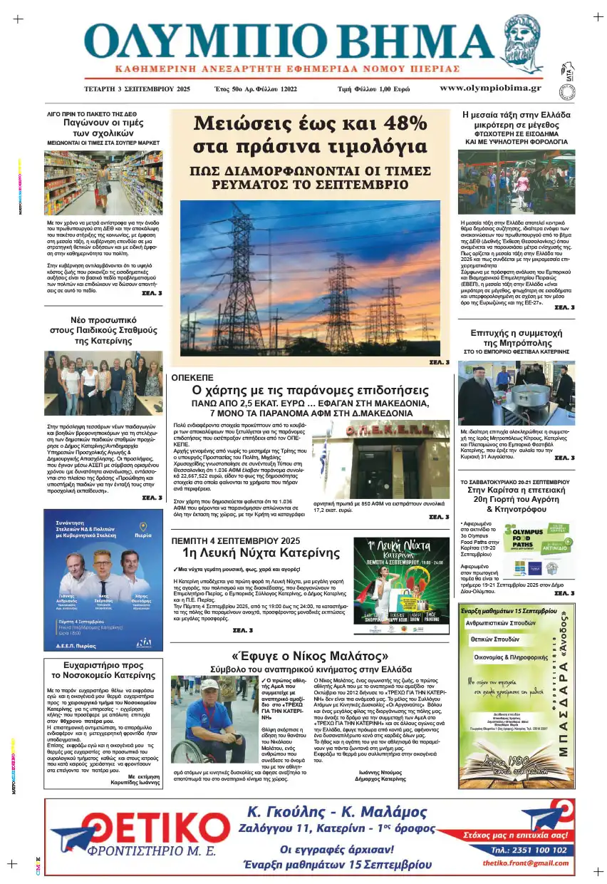 Ολύμπιο Βήμα – Πρωτοσέλιδο για την Τετάρτη, 03 Σεπτεμβρίου 2025