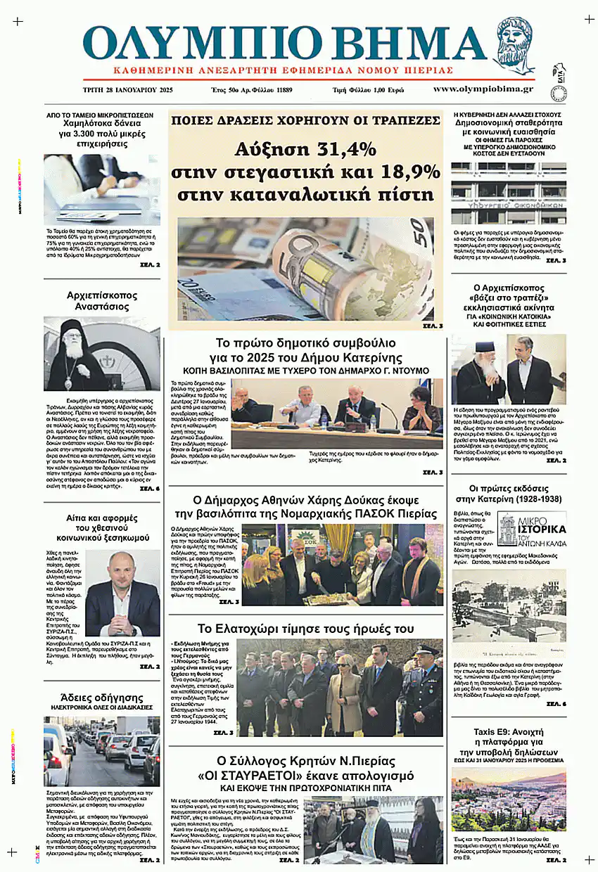 Ολύμπιο Βήμα – Πρωτοσέλιδο για την Τρίτη, 28 Ιανουαρίου 2025