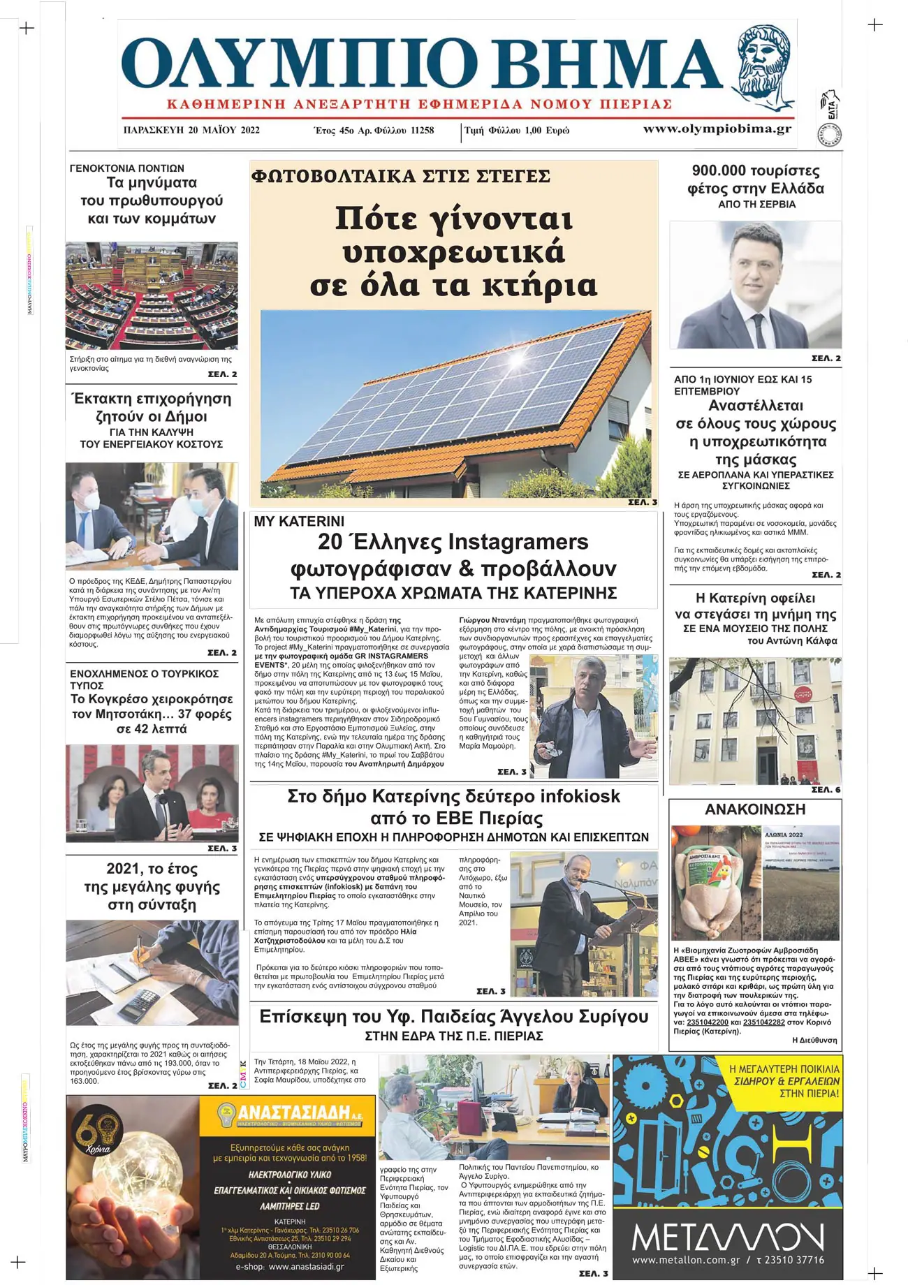 Μείνετε ενημερωμένοι με αξιόπιστες ειδήσεις από την Κατερίνη, την Πιερία, την Ελλάδα και τον κόσμο, καθημερινά στο olympiobima.gr.