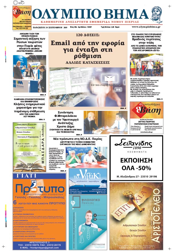 Η καθημερινή εφημερίδα για την Κατερίνη και την Πιερία, από το 1974, στην ηλεκτρονική της έκδοση.