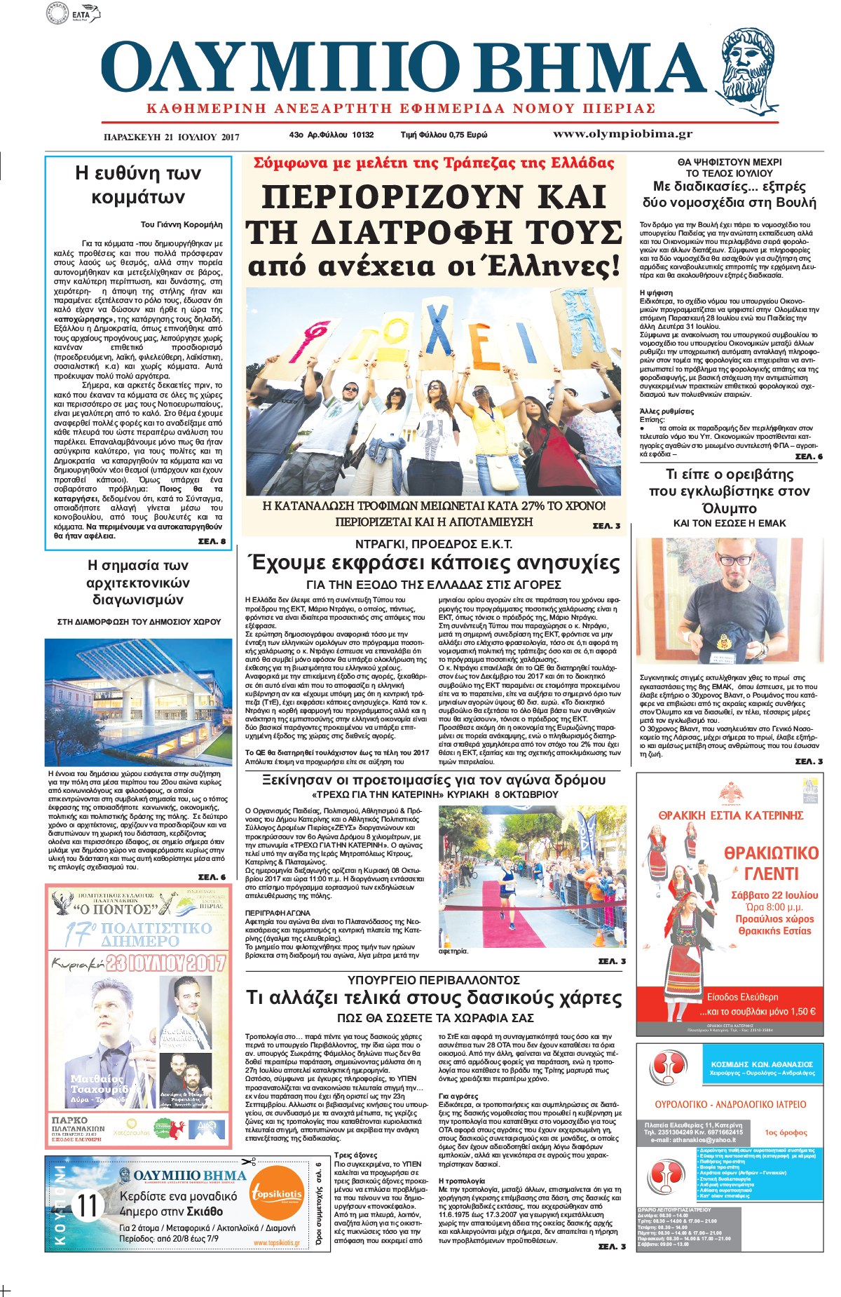 Μείνετε ενημερωμένοι με αξιόπιστες ειδήσεις από την Κατερίνη, την Πιερία, την Ελλάδα και τον κόσμο, καθημερινά στο olympiobima.gr.