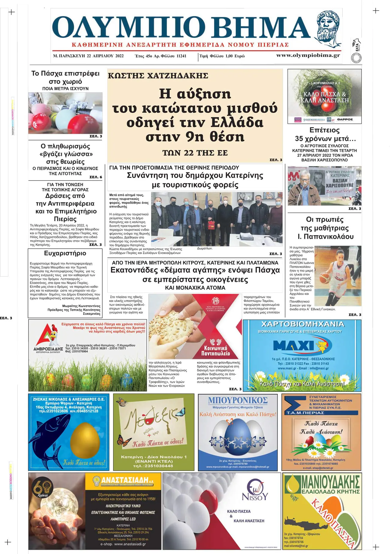 Μείνετε ενημερωμένοι με αξιόπιστες ειδήσεις από την Κατερίνη, την Πιερία, την Ελλάδα και τον κόσμο, καθημερινά στο olympiobima.gr.