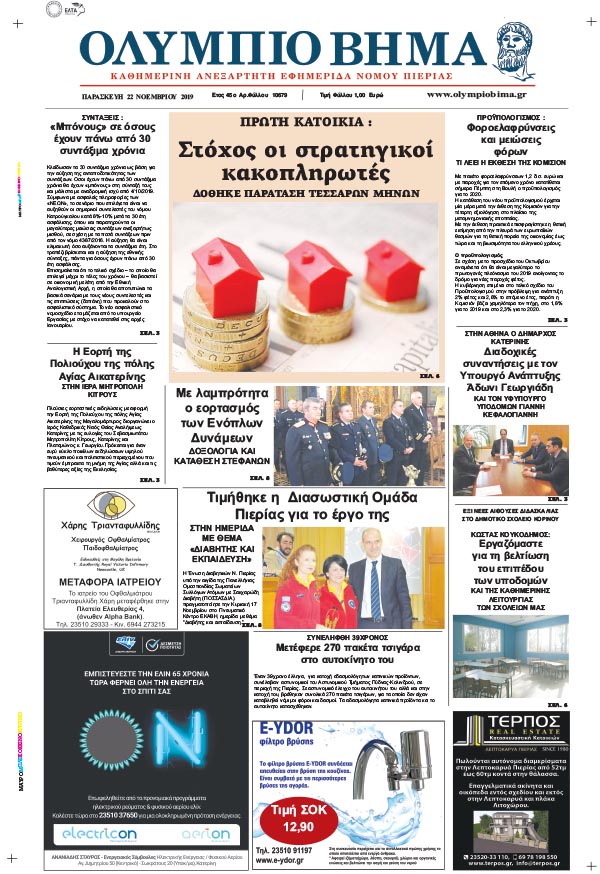Η καθημερινή εφημερίδα για την Κατερίνη και την Πιερία, από το 1974, στην ηλεκτρονική της έκδοση.