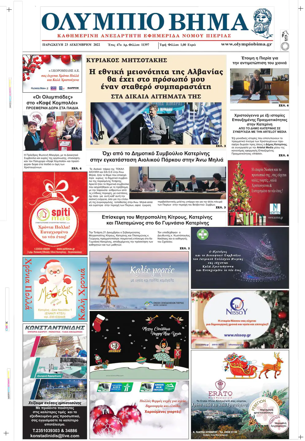 Μείνετε ενημερωμένοι με αξιόπιστες ειδήσεις από την Κατερίνη, την Πιερία, την Ελλάδα και τον κόσμο, καθημερινά στο olympiobima.gr.