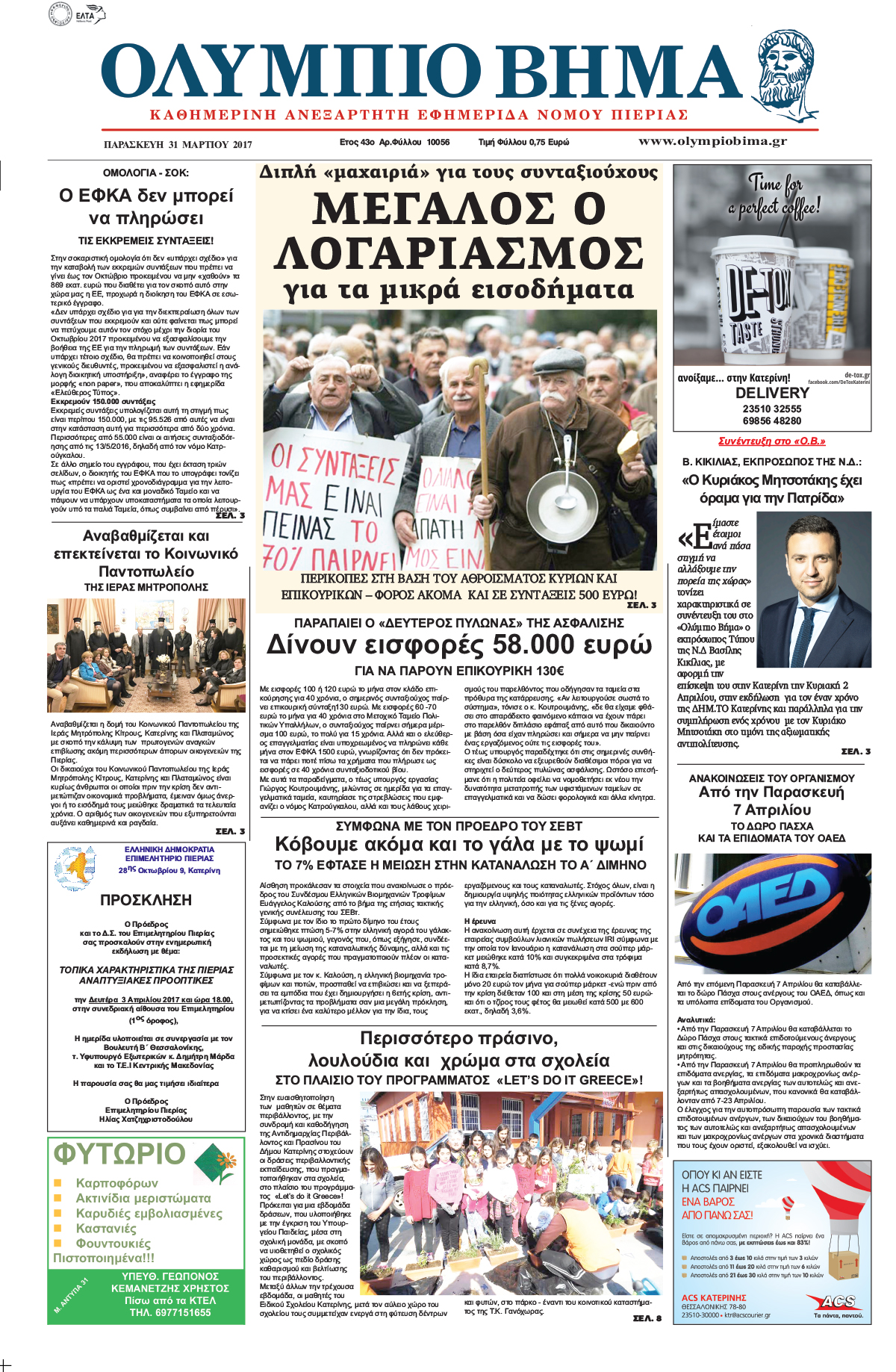 Μείνετε ενημερωμένοι με αξιόπιστες ειδήσεις από την Κατερίνη, την Πιερία, την Ελλάδα και τον κόσμο, καθημερινά στο olympiobima.gr.