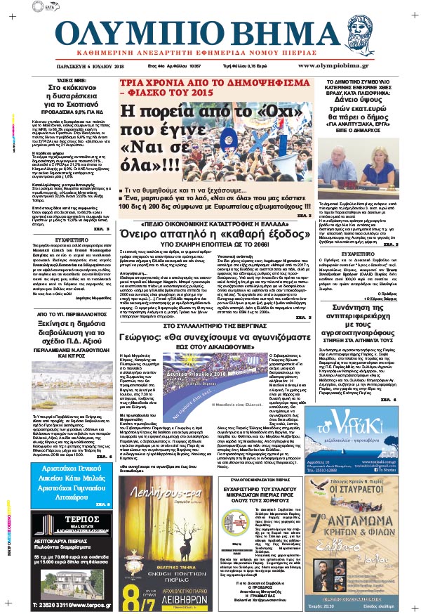 Μείνετε ενημερωμένοι με αξιόπιστες ειδήσεις από την Κατερίνη, την Πιερία, την Ελλάδα και τον κόσμο, καθημερινά στο olympiobima.gr.