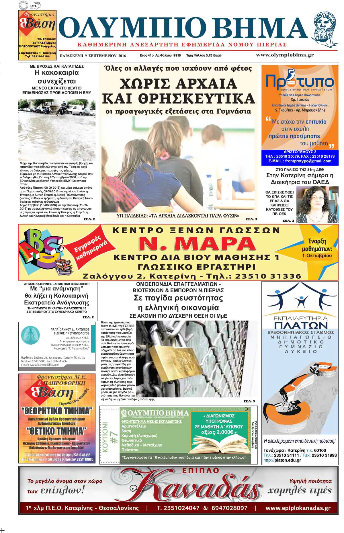 Μείνετε ενημερωμένοι με αξιόπιστες ειδήσεις από την Κατερίνη, την Πιερία, την Ελλάδα και τον κόσμο, καθημερινά στο olympiobima.gr.