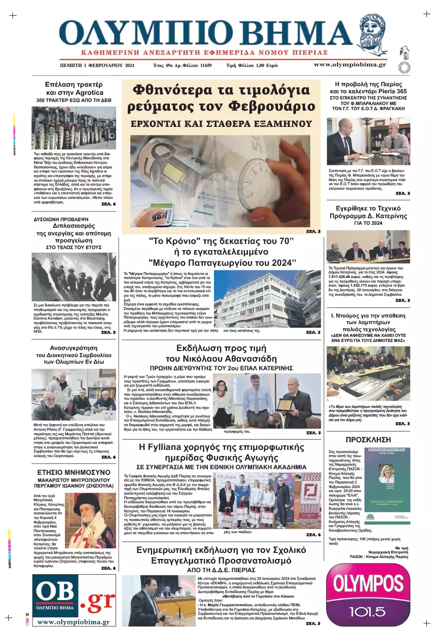 Μείνετε ενημερωμένοι με αξιόπιστες ειδήσεις από την Κατερίνη, την Πιερία, την Ελλάδα και τον κόσμο, καθημερινά στο olympiobima.gr.