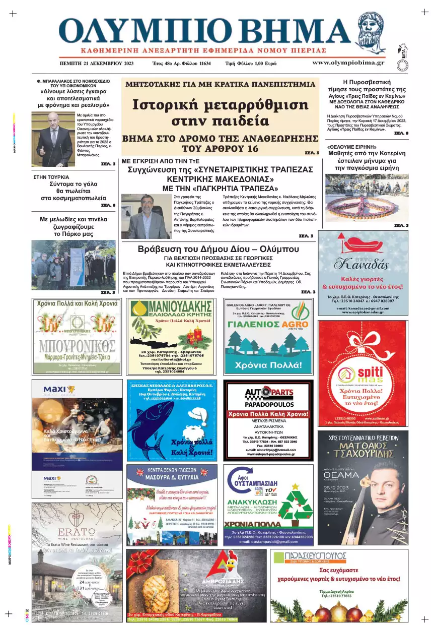 Μείνετε ενημερωμένοι με αξιόπιστες ειδήσεις από την Κατερίνη, την Πιερία, την Ελλάδα και τον κόσμο, καθημερινά στο olympiobima.gr.