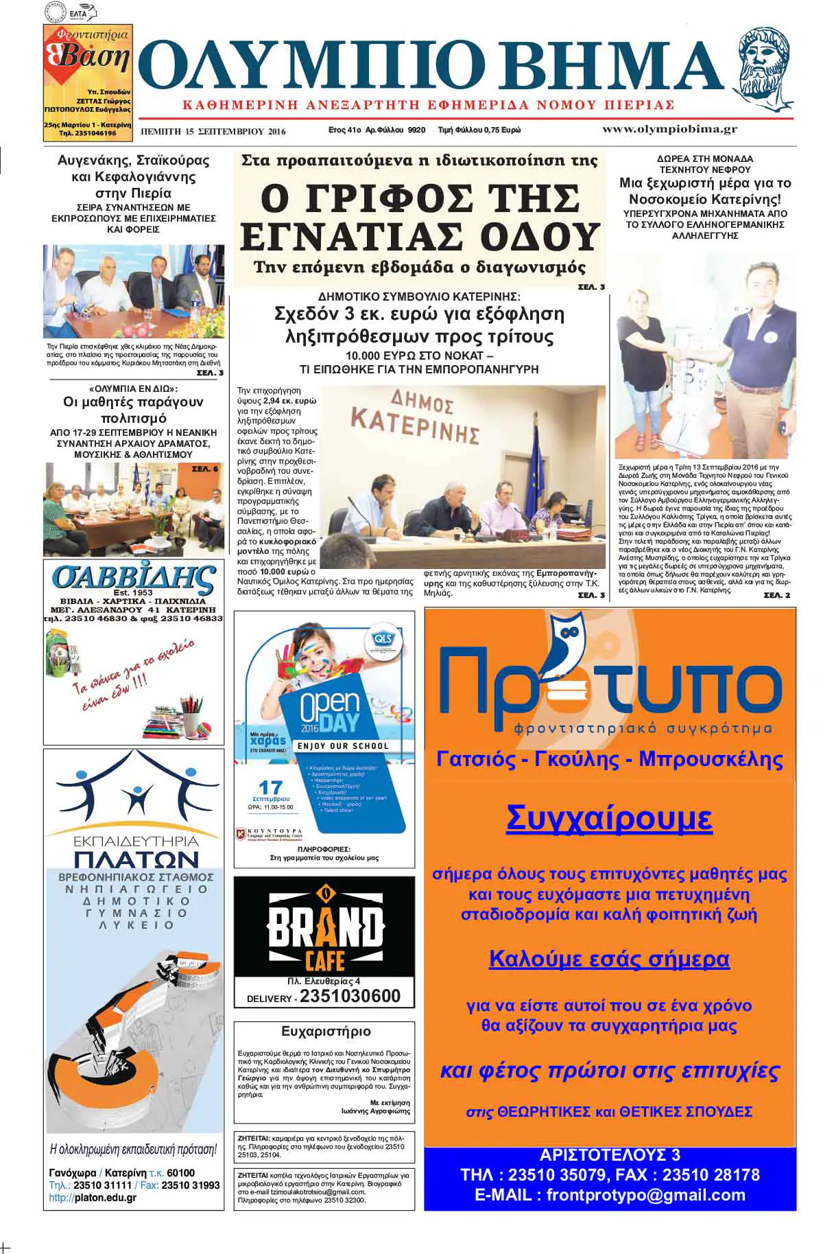 Η καθημερινή εφημερίδα για την Κατερίνη και την Πιερία, από το 1974, στην ηλεκτρονική της έκδοση.