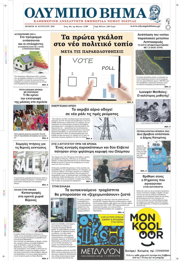 Μείνετε ενημερωμένοι με αξιόπιστες ειδήσεις από την Κατερίνη, την Πιερία, την Ελλάδα και τον κόσμο, καθημερινά στο olympiobima.gr.