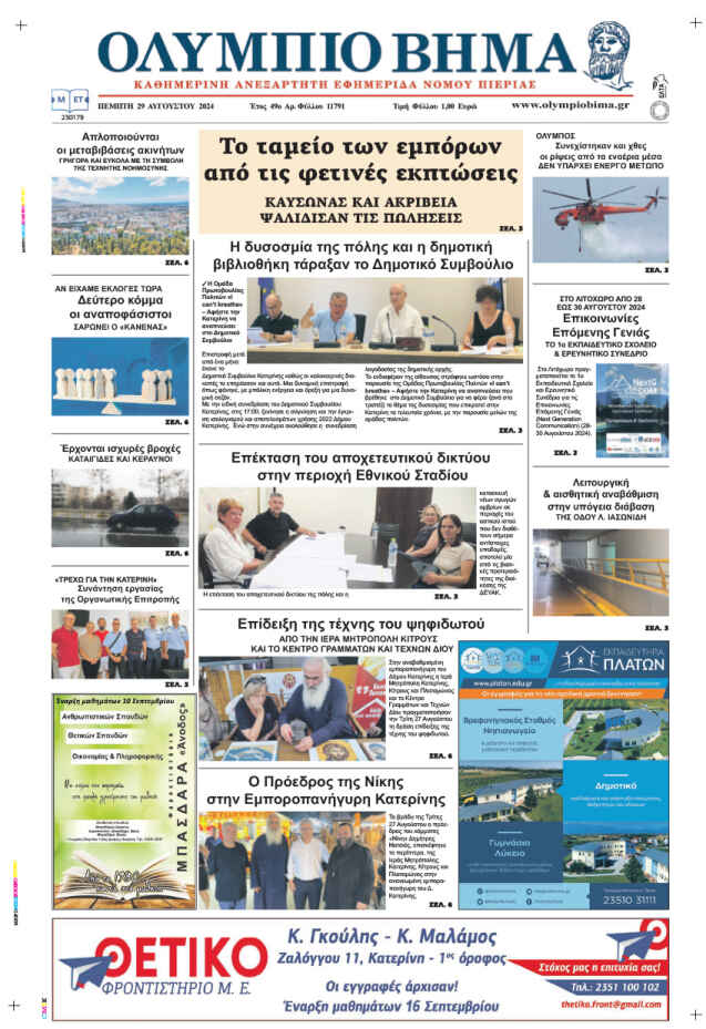 Η καθημερινή εφημερίδα για την Κατερίνη και την Πιερία, από το 1974, στην ηλεκτρονική της έκδοση.