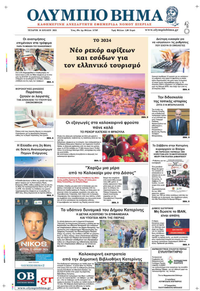 Το Ολύμπιο Βήμα είναι η ιστορική ημερήσια εφημερίδα της Πιερίας με έδρα την Κατερίνη, που προσφέρει αξιόπιστη τοπική ενημέρωση σε πολιτική, κοινωνία, πολιτισμό, οικονομία και αθλητισμό, τόσο έντυπα όσο και ψηφιακά