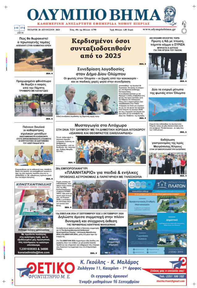 Η καθημερινή εφημερίδα για την Κατερίνη και την Πιερία, από το 1974, στην ηλεκτρονική της έκδοση.