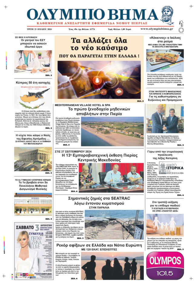 Μείνετε ενημερωμένοι με αξιόπιστες ειδήσεις από την Κατερίνη, την Πιερία, την Ελλάδα και τον κόσμο, καθημερινά στο olympiobima.gr.