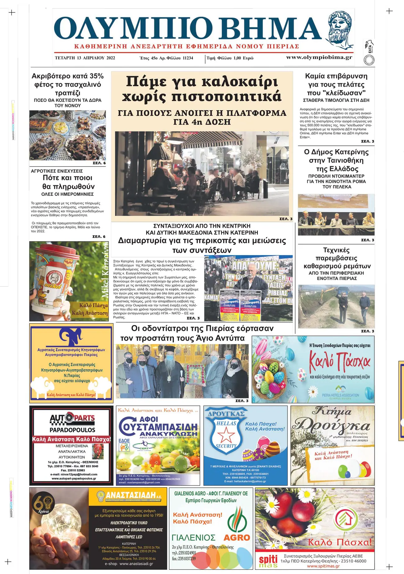 Μείνετε ενημερωμένοι με αξιόπιστες ειδήσεις από την Κατερίνη, την Πιερία, την Ελλάδα και τον κόσμο, καθημερινά στο olympiobima.gr.