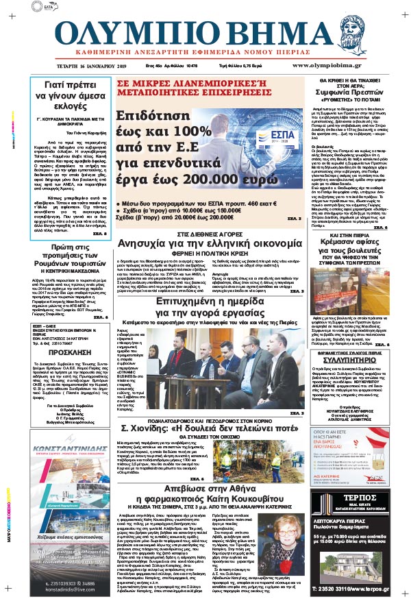 Μείνετε ενημερωμένοι με αξιόπιστες ειδήσεις από την Κατερίνη, την Πιερία, την Ελλάδα και τον κόσμο, καθημερινά στο olympiobima.gr.