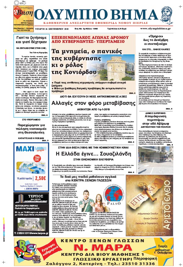 Η καθημερινή εφημερίδα για την Κατερίνη και την Πιερία, από το 1974, στην ηλεκτρονική της έκδοση.