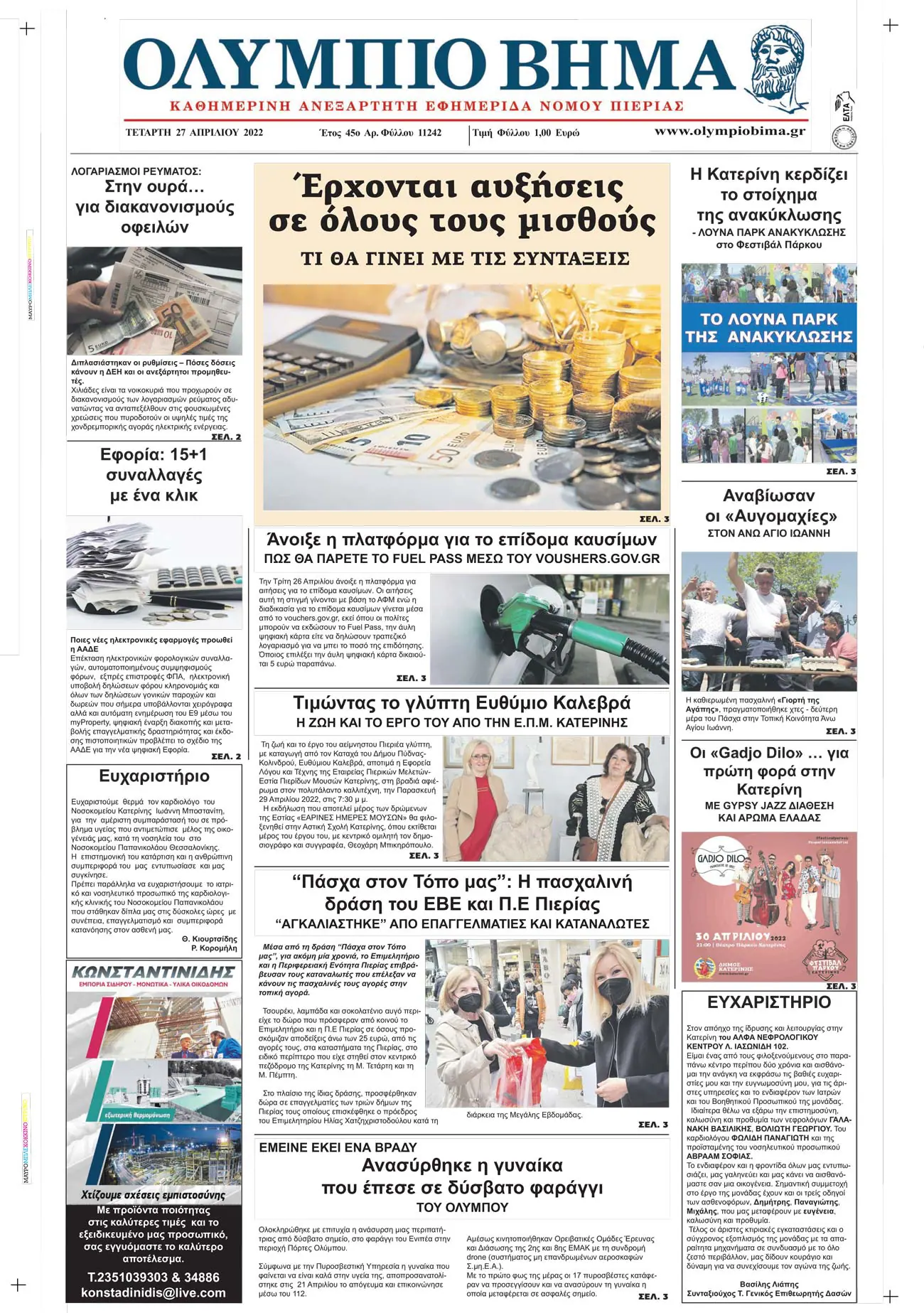 Μείνετε ενημερωμένοι με αξιόπιστες ειδήσεις από την Κατερίνη, την Πιερία, την Ελλάδα και τον κόσμο, καθημερινά στο olympiobima.gr.