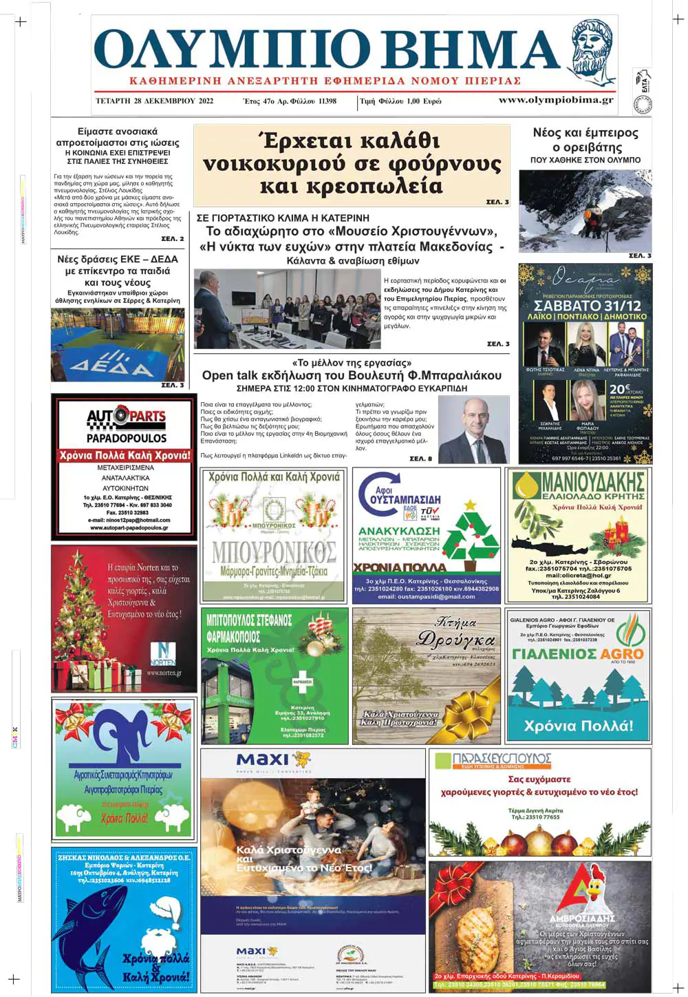 Η καθημερινή εφημερίδα για την Κατερίνη και την Πιερία, από το 1974, στην ηλεκτρονική της έκδοση.