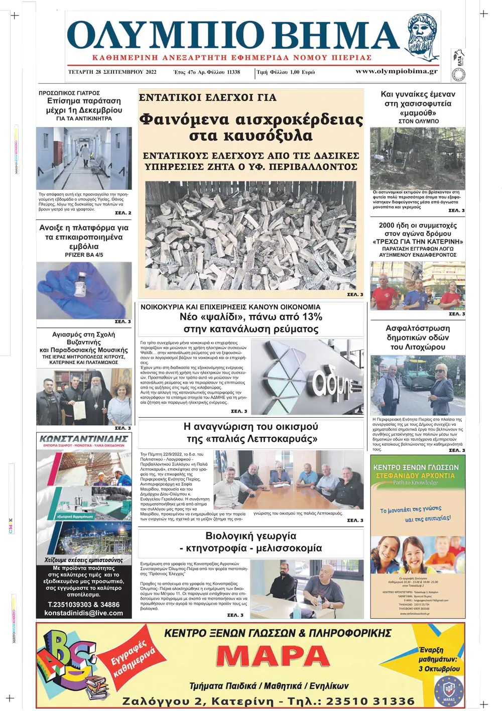 Μείνετε ενημερωμένοι με αξιόπιστες ειδήσεις από την Κατερίνη, την Πιερία, την Ελλάδα και τον κόσμο, καθημερινά στο olympiobima.gr.