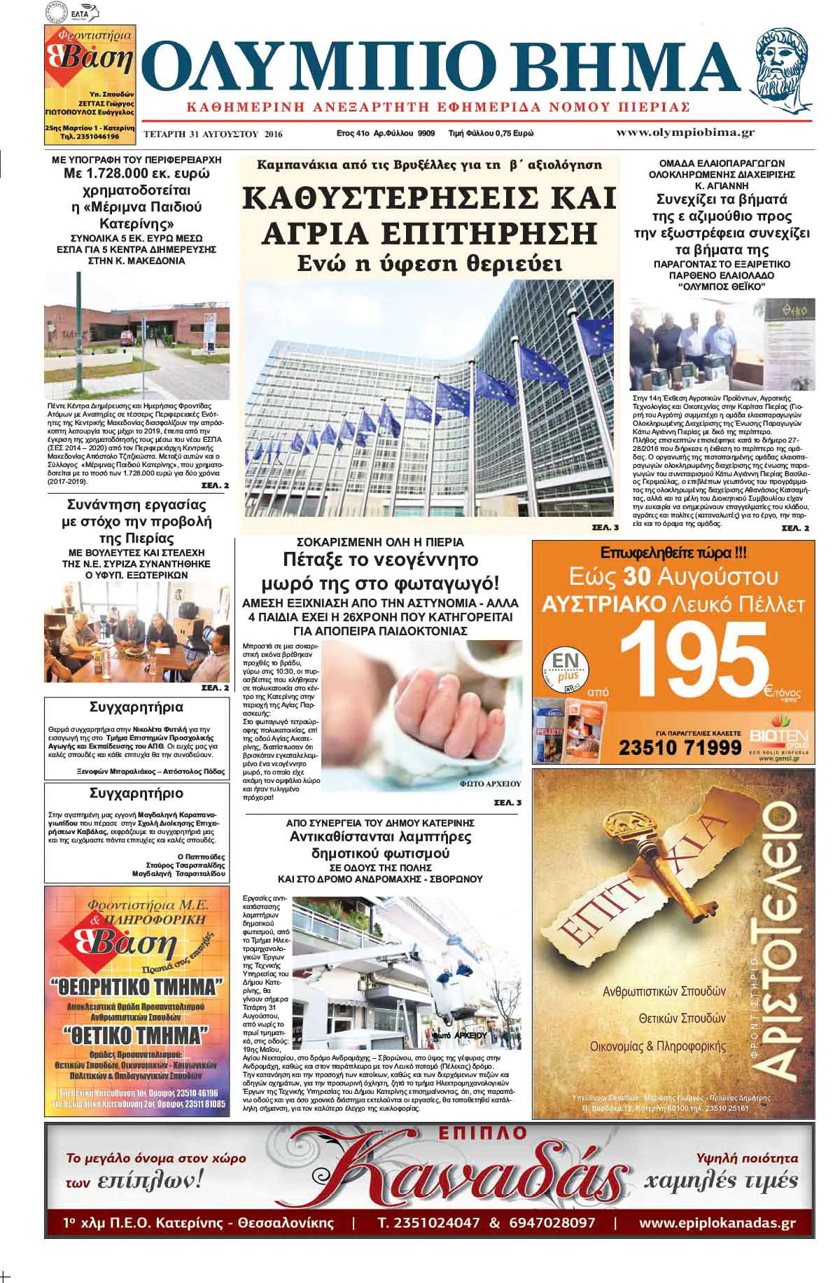 Η καθημερινή εφημερίδα για την Κατερίνη και την Πιερία, από το 1974, στην ηλεκτρονική της έκδοση.
