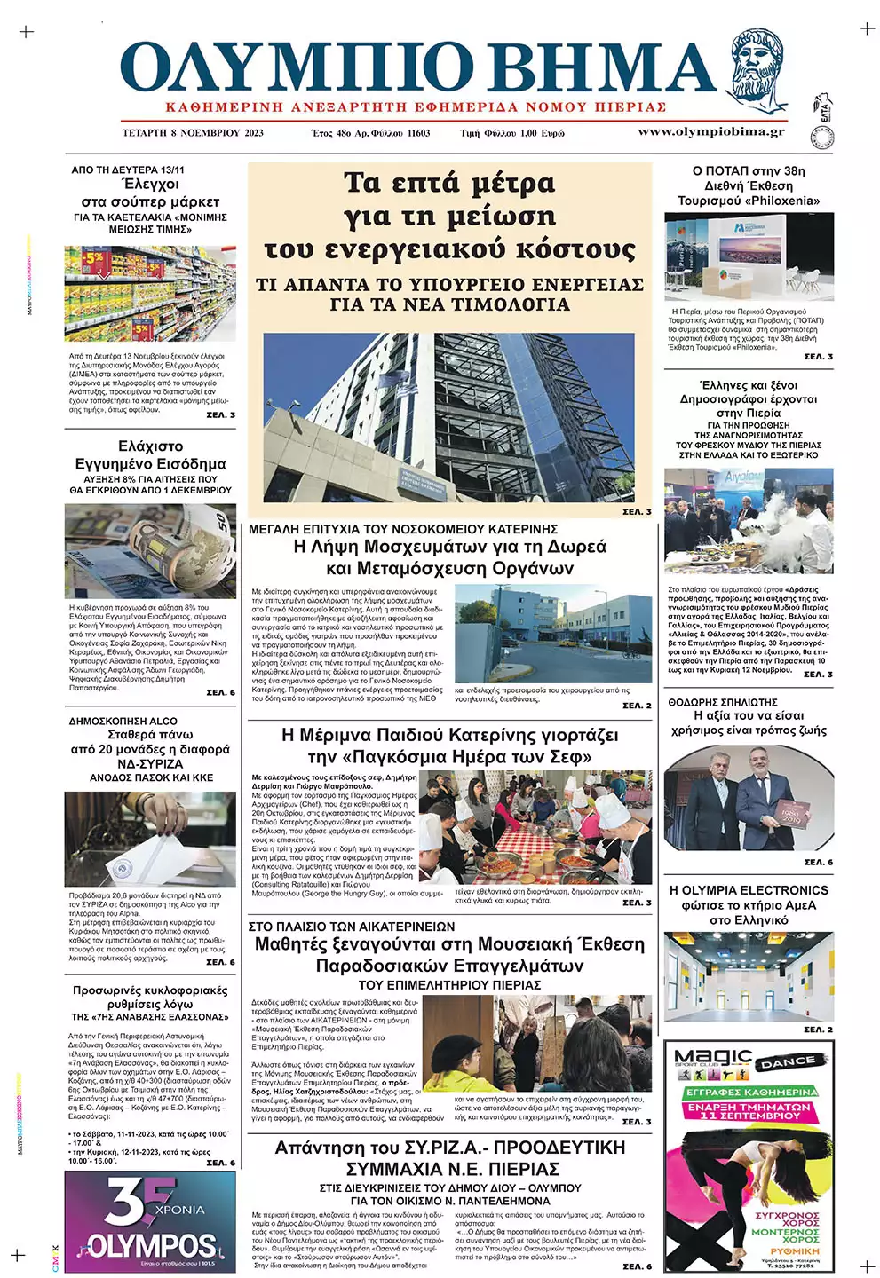 Η καθημερινή εφημερίδα για την Κατερίνη και την Πιερία, από το 1974, στην ηλεκτρονική της έκδοση.
